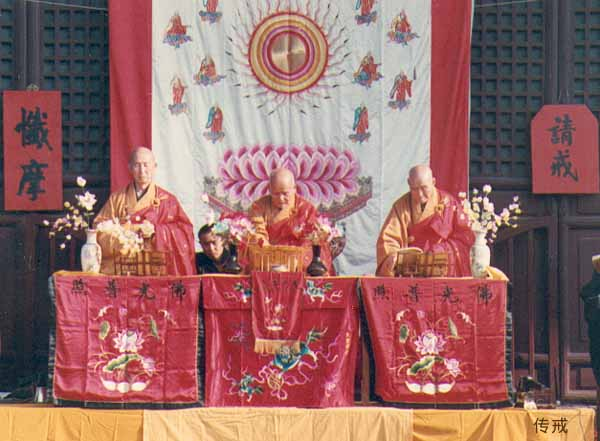 文革结束,中国佛教经历了十年浩劫,在宗教政策得到贯彻落实之后,佛教事业百废待兴,而这时的佛教界却几无僧才可用。为了扭转这种局面,明开老和尚在1982至1985年期间先后传授了两届三坛大戒,老和尚为得戒大和尚,共176人具足,解决了当时寺院急缺僧人的问题。1983年在中国佛学院灵岩山分院第一届毕业典礼上,老和尚开示:“急切需要一批有文化、有佛学知识的年青僧人来接班。”老和尚一再强调:“寺庙应以和尚为主,庙是和尚的家”,“把庙管好,有利于为四化服务”。